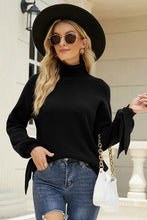 Turtle Neck Ribbon Detailed sleeve sweater. 50 Viscose, 30 Nylon, 20 Polyester